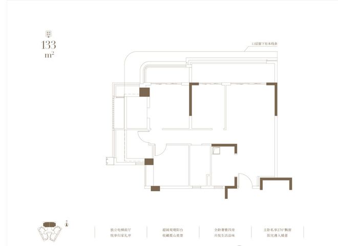 建面133㎡户型,独立电梯前厅,悦享归家礼序,超阔观境阳台,收藏揽山美景。