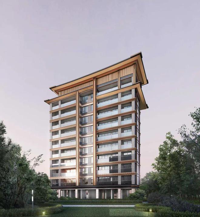 从外立面来看,楼栋整体将现代风格与东方意境融合。除了顶层飞檐外,次顶层的屋檐采用了错层设计。南侧大面积玻璃与金色铝板搭配,让建筑整体充满中式韵味的同时也呈现出灵动之感。
