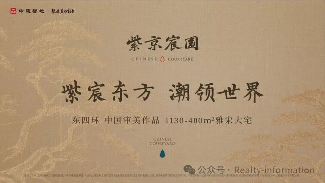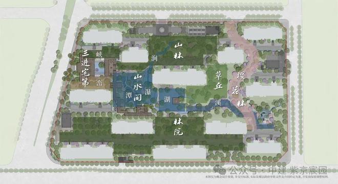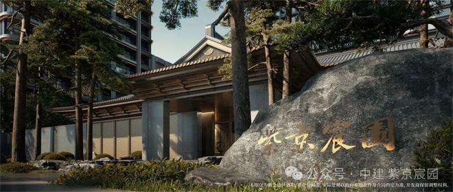 『紫京宸园 引领时代的世界作品』中建智地第三座宸园,宅园相生,人园相和,全面开启属于宸园的时代。◎城市山林 居游之园外融公园群落,借景入园,内循道法自然,构建约4.5万方宏阔又精微的山水体系,做到外苑内园,中得山水。