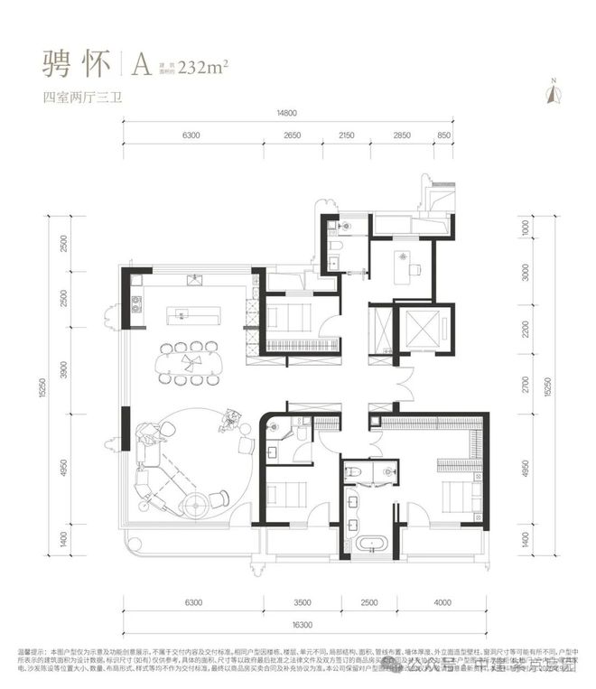 「四时入画,山水澹远」• 尊荣梯户,独立玄关,归家意在从容• 约13.3米南向超大面宽,雅宋园境诗意铺展• 约5.9米社交宽厅场域,悠远天地尽收眼底• 洄游式家庭起居动线,步入风雅生活情境• 主卧套房 270°全景视野,山水栖居心境致远• 开放式中西厨,献映味蕾盛宴